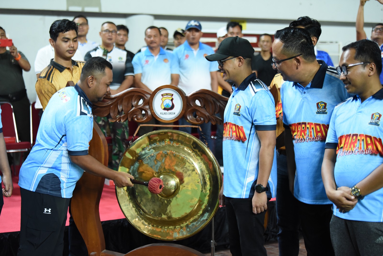 Simbolisasi pembukaan dilakukan dengan pemukulan gong sebanyak tiga kali oleh Kapolres Gresik, disambut riuh tepuk tangan seluruh tamu undangan.