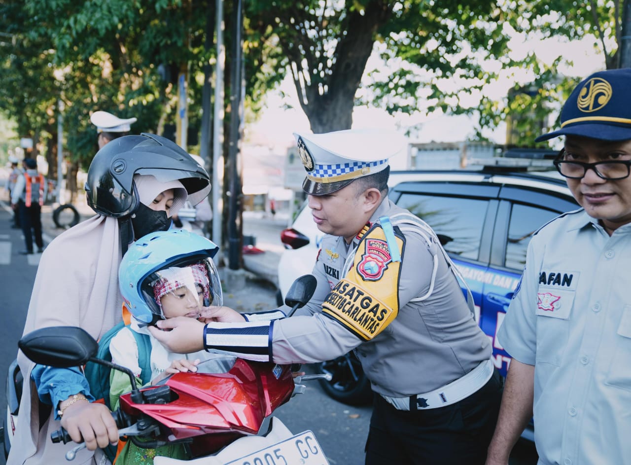 Dalam kegiatan ini, Satlantas Polres Gresik memilih pendekatan yang lebih simpatik, tak hanya membagikan brosur berisi tujuh prioritas pelanggaran lalu lintas, tetapi juga memberikan helm gratis kepada pengendara, terutama anak-anak, yang kedapatan tidak mengenakan pelindung kepala.