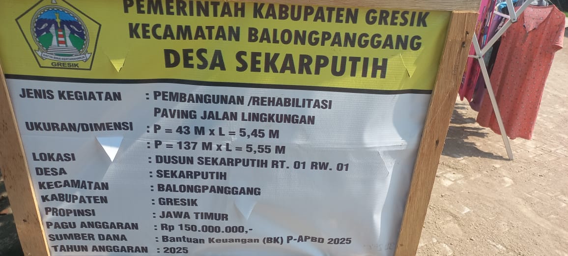 Pemerintah Desa Sekarputih, Kecamatan Balongpanggang, Kabupaten Gresik gencar membangun. Dalam membangun jalan lingkungan (Pavingisasi) Mendapat Sorotan dan tanda tanya terkait Efektivitas dan transparasi penggunaan anggaran.