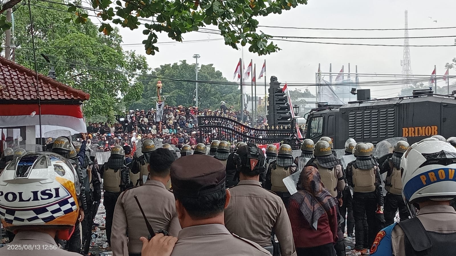 Suasana sempat memanas ketika Sudewo keluar untuk menemui massa. Sayangnya, ia malah mendapatkan lemparan botol air mineral dan sandal, memaksa aparat keamanan segera mengevakuasinya.