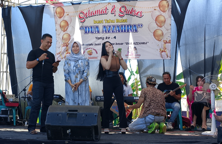 Panggung perayaan dihiasi musik elekton yang meriah dan kesenian kepang yang sarat tradisi. Tiga penyanyi dengan penuh pesona tampil memikat, menyalakan semangat masyarakat, dan membaurkan hiburan modern dengan kearifan budaya lokal. Di tengah sorak kegembiraan, perayaan ini menjadi saksi perjalanan usaha kecil yang tumbuh menjadi simbol daya tahan, kerja keras, dan cinta pada tradisi.