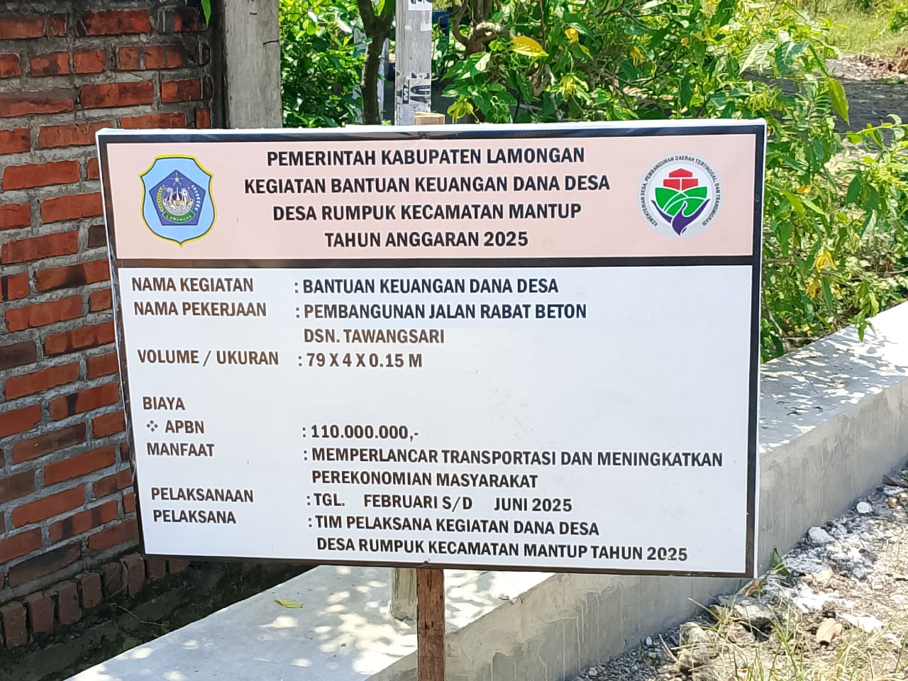 Proyek jalan rabat beton Desa Rumpuk, Kecamatan Mantup, Kabupaten Lamongan, Tahun Anggaran 2025, senilai Rp110 juta kini disorot. Jalan sepanjang 79 meter dengan lebar 4 meter dan tebal 15 sentimeter itu baru selesai dikerjakan, namun sudah retak dan pecah memanjang. Kondisi ini memperlihatkan indikasi kuat pekerjaan dilakukan asal jadi tanpa tahapan konstruksi yang benar.