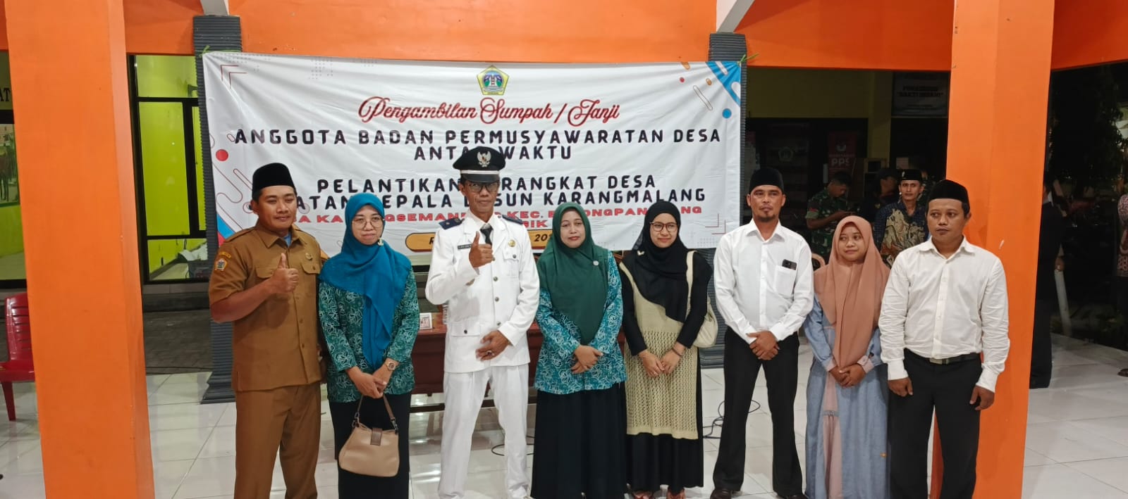 Pemerintah Desa (Pemdes) Karangsemanding, Kecamatan Balongpanggang, Kabupaten Gresik melantik Perangkat Baru yang akan menjabat sebagai Kepala Dusun Karangmalang. Pada Rabu 20/8/2024
