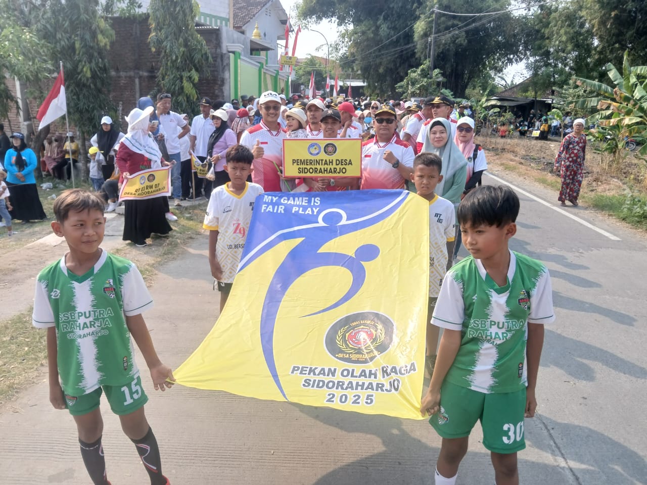 Dalam sambutannya, Kades Sidoraharjo H. Suwoto, S.H., menyampaikan bahwa kegiatan ini menjadi ajang silaturahmi sekaligus sarana pembinaan bakat olahraga di tingkat desa. “Selain untuk mencari bibit atlet, Pekan Olahraga ini juga diharapkan dapat mempererat persaudaraan antarwarga,” ujarnya.