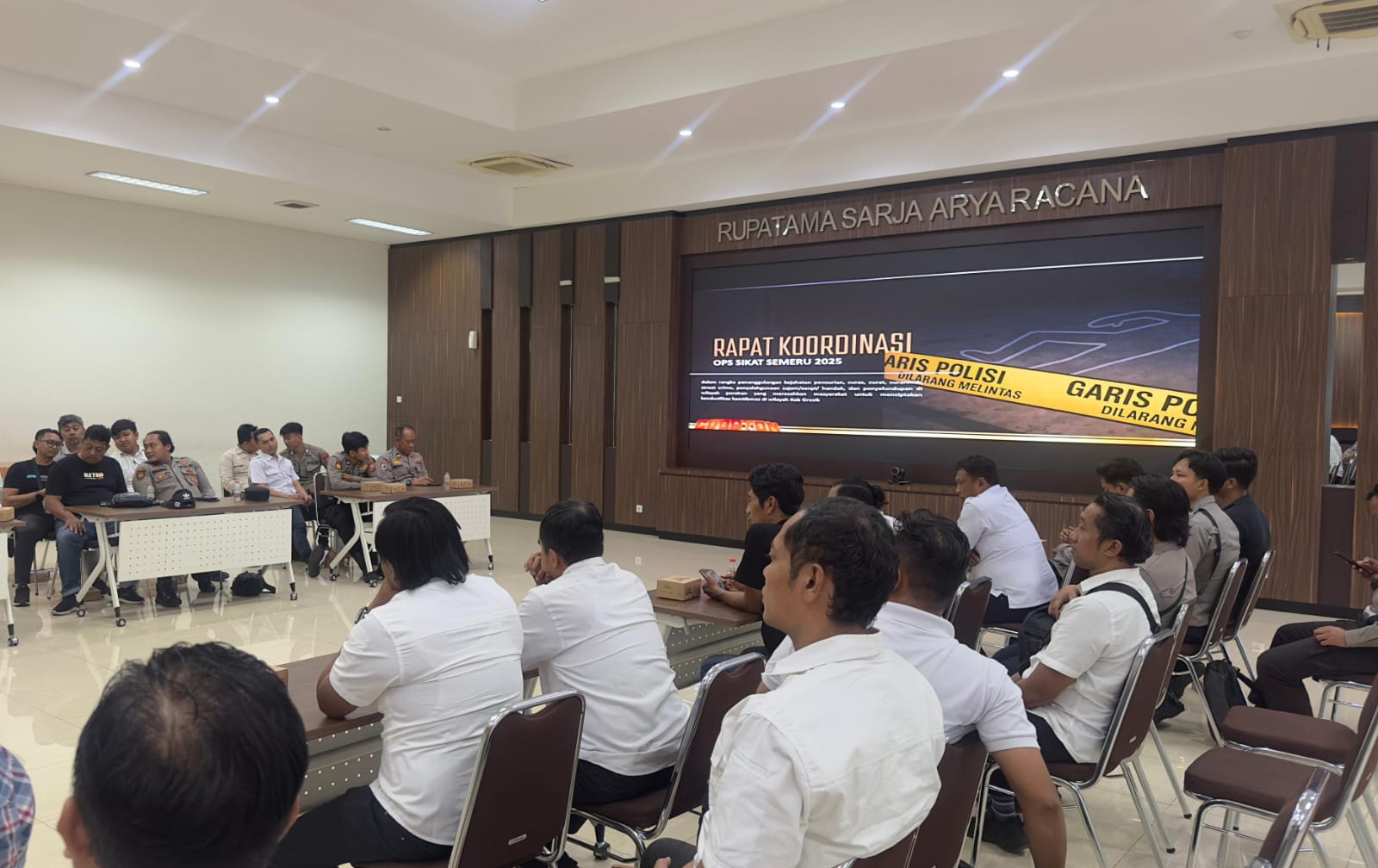 Kegiatan pra operasi yang digelar dalam bentuk Latihan Pra Operasi (Lat Pra Ops) yang digelar di Rupatama Polres Gresik. Selasa (21-10-2025), menjadi ajang penyamaan persepsi dan strategi antar satuan. Dalam kegiatan tersebut, setiap fungsi operasional Polres diminta bersinergi secara maksimal, baik dalam upaya pencegahan, penindakan, maupun deteksi dini terhadap potensi kejahatan.