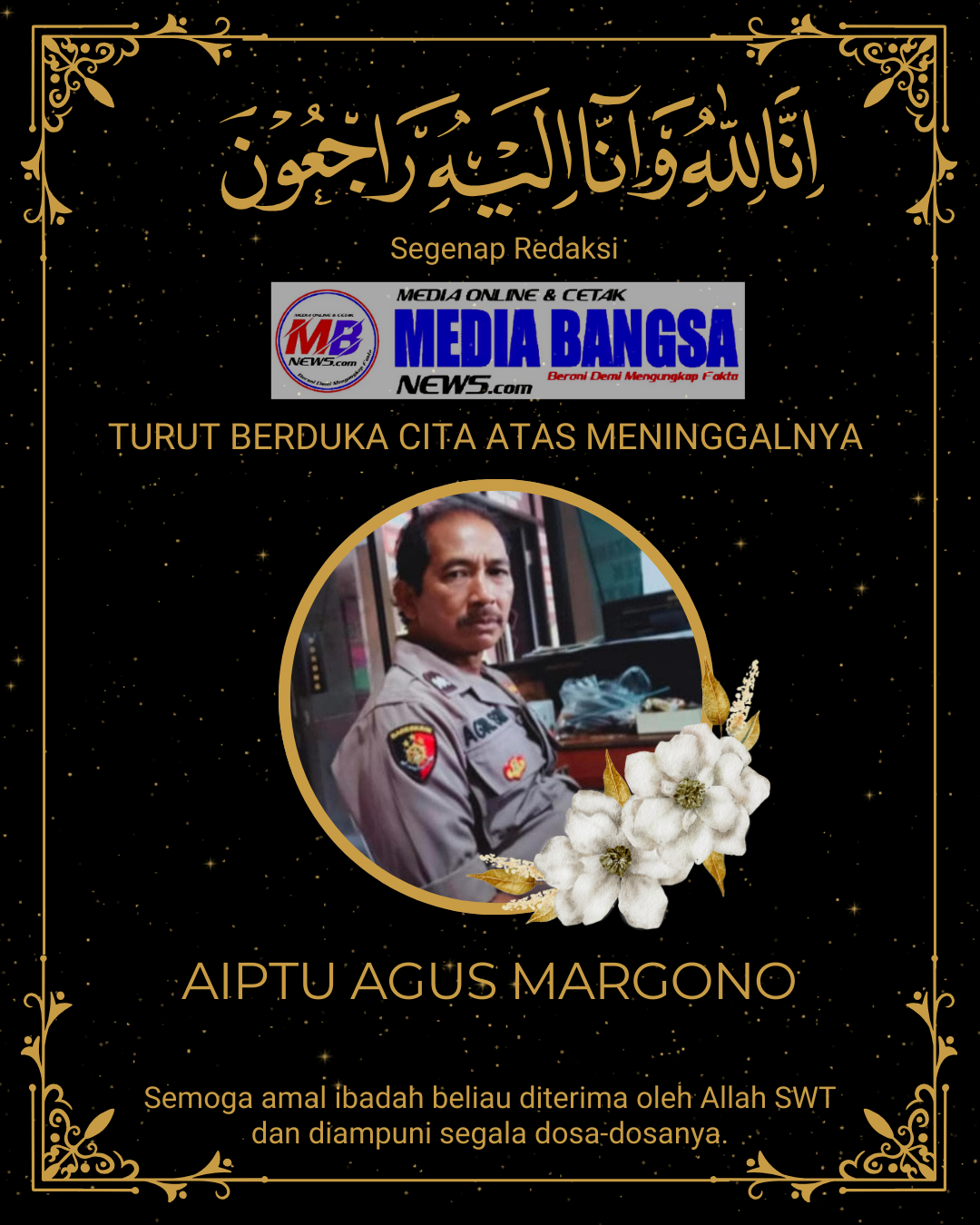 Segenap jajaran Redaksi dan wartawan Mediabangsanews.com turut berduka cita yang sedalam dalamnya atas wafatnya AIPTU Agus Margono. Anggota Banit Polsek Menganti, Polres Gresik.