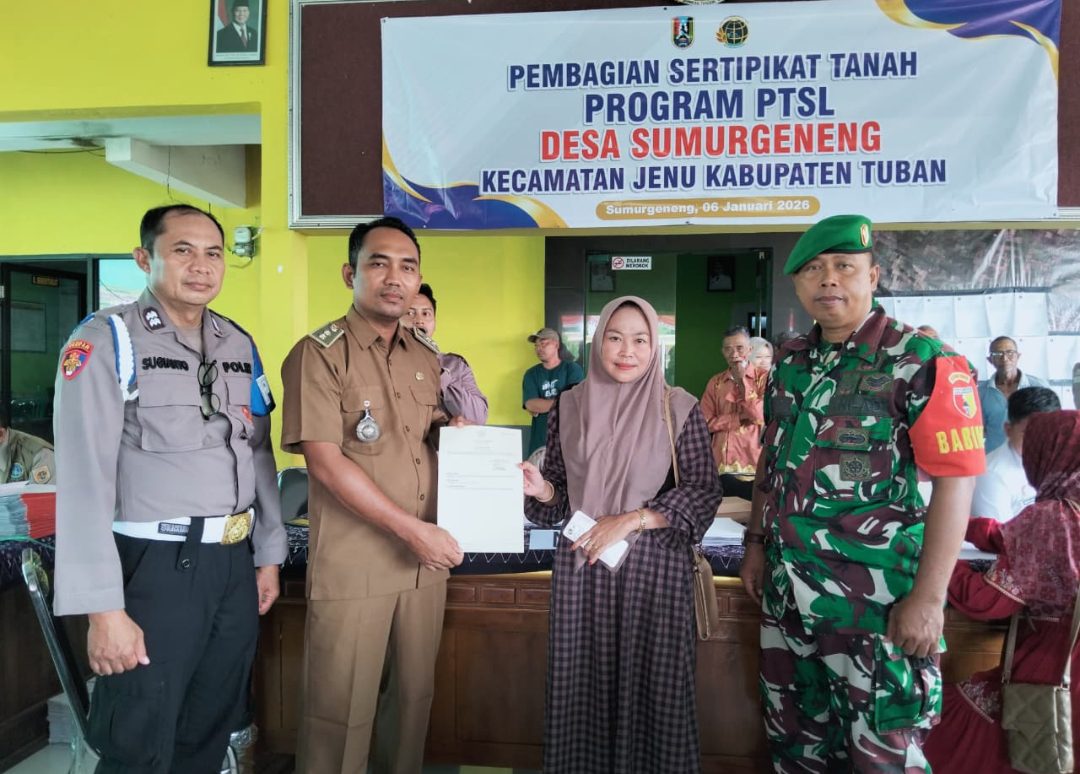 Pada kesempatan tersebut selain di hadiri oleh Kepala Desa Sumur Geneng Gianto dan Perangkatnya juga di hadiri oleh tim perwakilan dari BPN Kabupaten Tuban serta Forkopimcam Jenu dan masyarakat sebagai penerima.