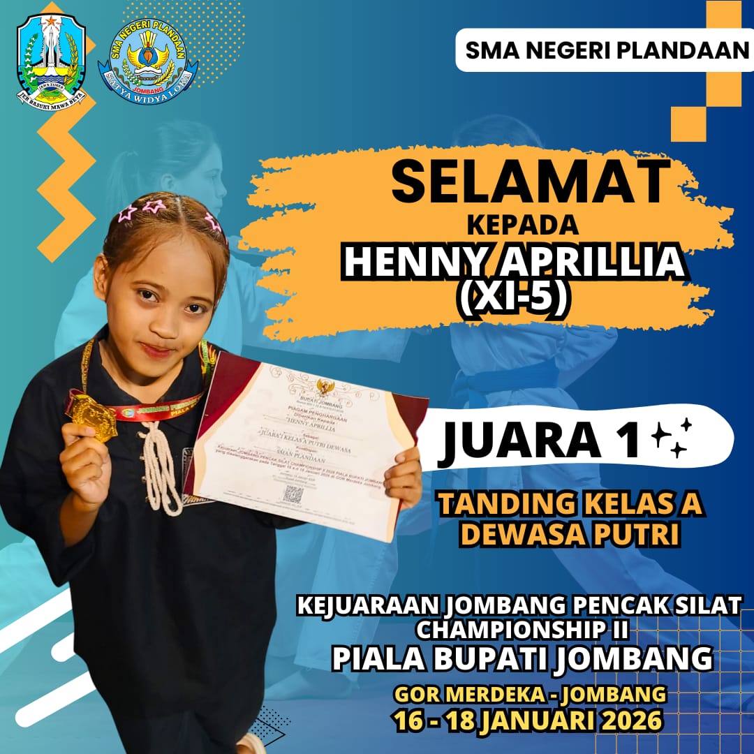 Atlet pencak silat perwakilan SMA Negeri Plandaan, Kabupaten Jombang torehkan prestasi gemilang dalam ajang Jombang Pencak Silat Championship II Piala Bupati Tahun 2026 yang di gelar di Gedung Olah Raga (GOR) merdeka jombang. Pada Sabtu 18/1/2026.