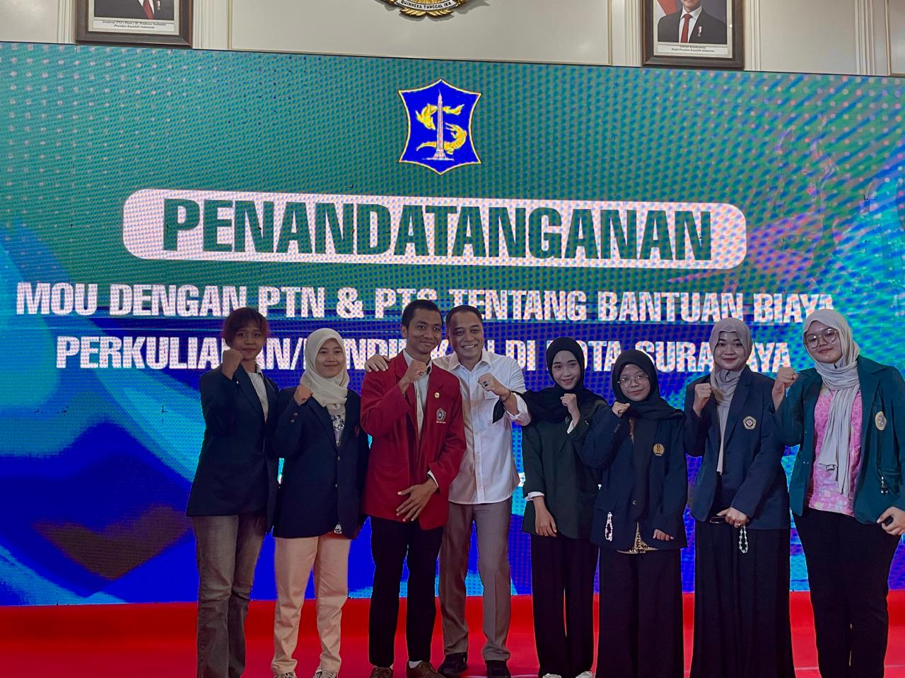 Dua mahasiswa Universitas Wijaya Putra (UWP) mendapat kehormatan mewakili ribuan penerima dari Perguruan Tinggi Swasta (PTS) dalam penyerahan bantuan beasiswa pendidikan dari Pemerintah Kota (Pemkot) Surabaya. Acara tersebut digelar di Balai Kota Surabaya pada Kamis, 5 Februari 2026 sebagai bentuk apresiasi dan dukungan terhadap mahasiswa berprestasi dari keluarga kurang mampu pada kegiatan penandatanganan MoU dengan PTS & PTN Tentang Bantuan Biaya Perkuliahan/ Pendidikan Di Kota Surabaya.