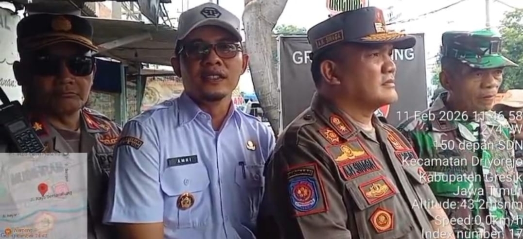 Pemerintah Kabupaten Gresik melalui Satpol PP melakukam penertiban bangunan liar di sepanjang sepadan Jalan Raya Semambung, Kecamatan Driyorejo, Kabuoaten Gresik. Pada Rabu 11/2/2026