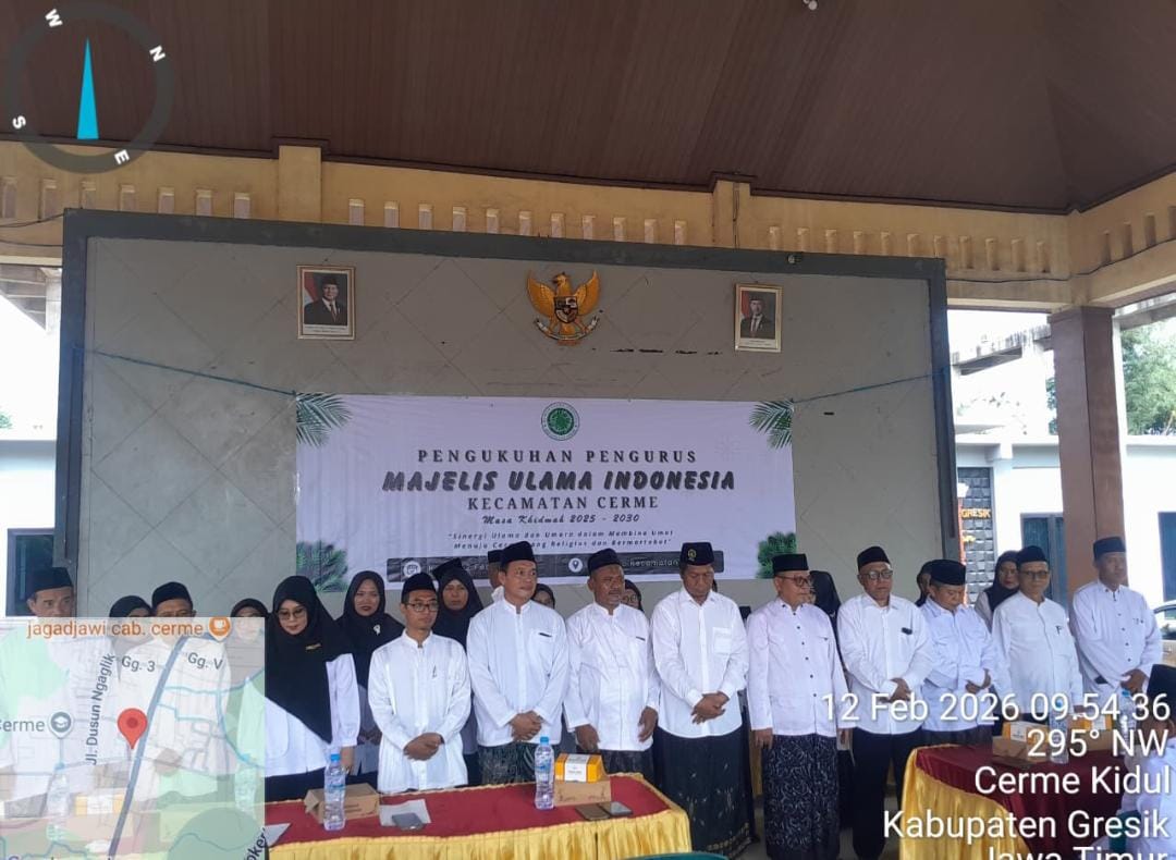 Bertempat di pendopo Kecamatan Cerme, Kabupaten Gresik, telah dilaksanakan pengukuhan pengurus Majelis Ulama Indonesia (MUI) Kecamatan Cerme masa khidmah 2025-2030. Acara ini menjadi momentum penting dalam memperkuat peran ulama dan cendekiawan muslim di tingkat kecamatan, serta meningkatkan sinergi antara ulama, umara, dan masyarakat.