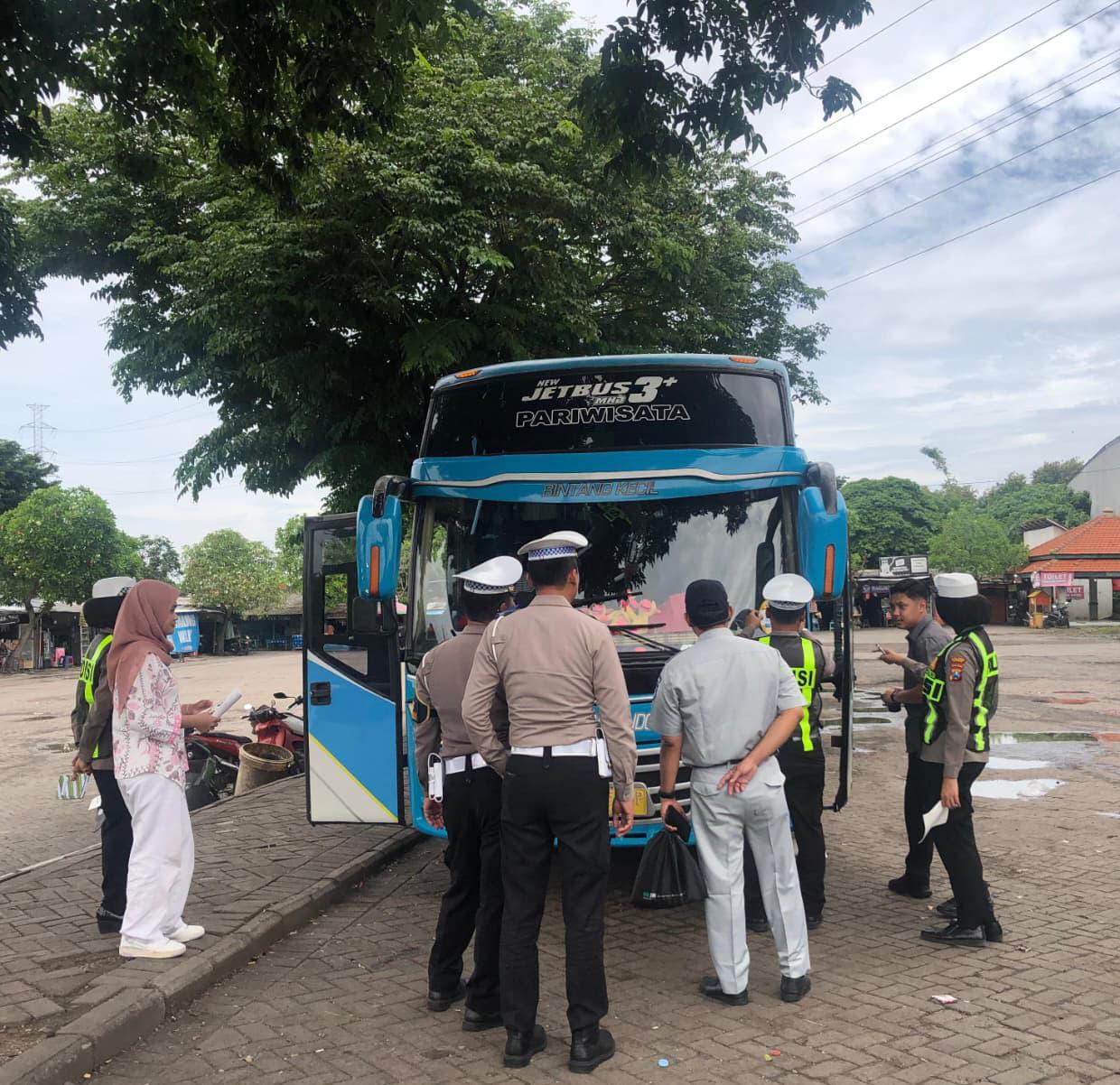 Satlantas Polres Gresik Gelar Ramp Check Bus Pariwisata di Kawasan Sunan Giri, Pastikan Keselamatan Peziarah