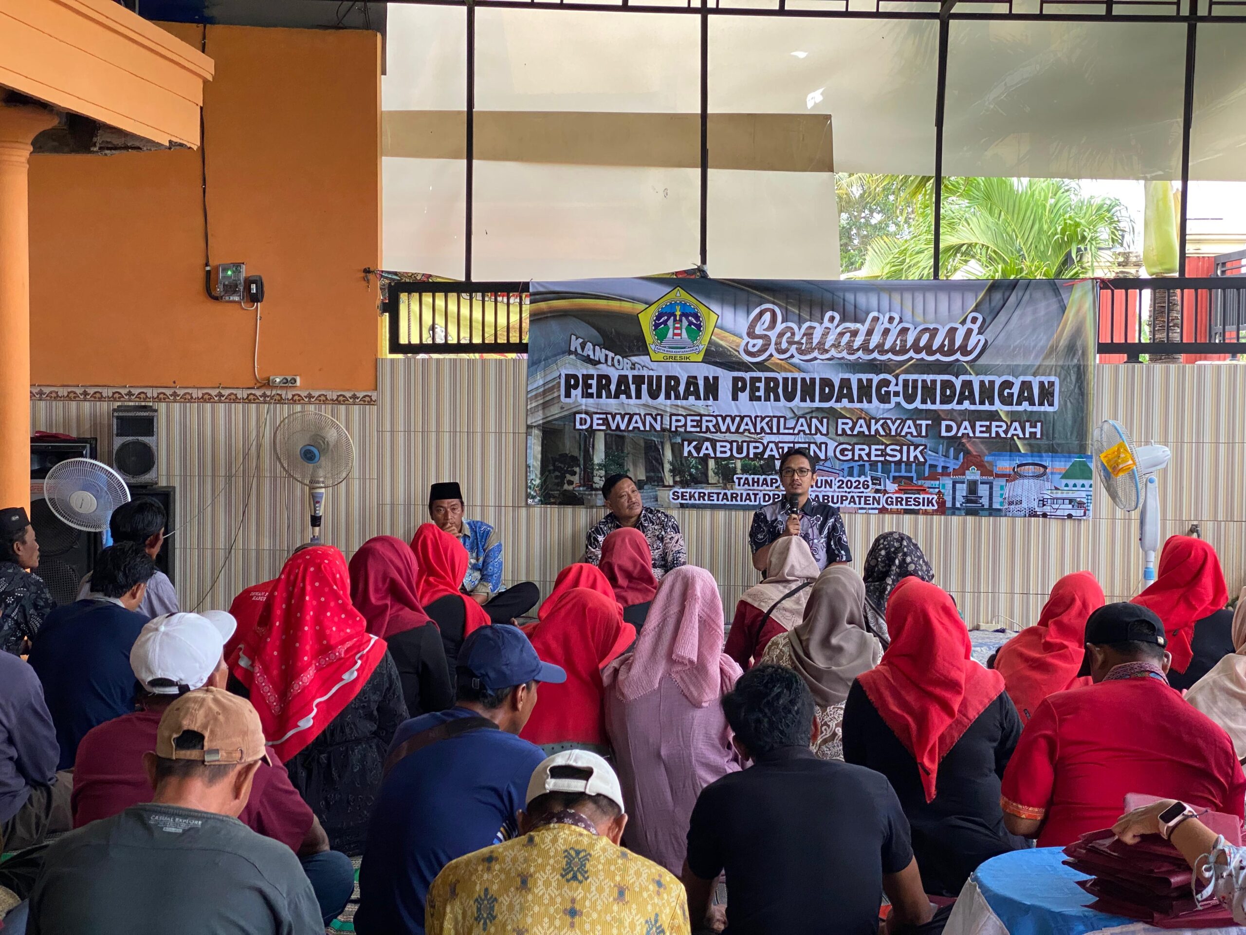 Sosialisasi ini merupakan bagian dari Sosperda DPRD Kabupaten Gresik Tahap I Tahun 2026 yang bertujuan memberikan pemahaman kepada masyarakat terkait hak dan kewajiban tenaga kerja serta memastikan pekerja asal Gresik mendapatkan perlindungan sesuai peraturan yang berlaku.